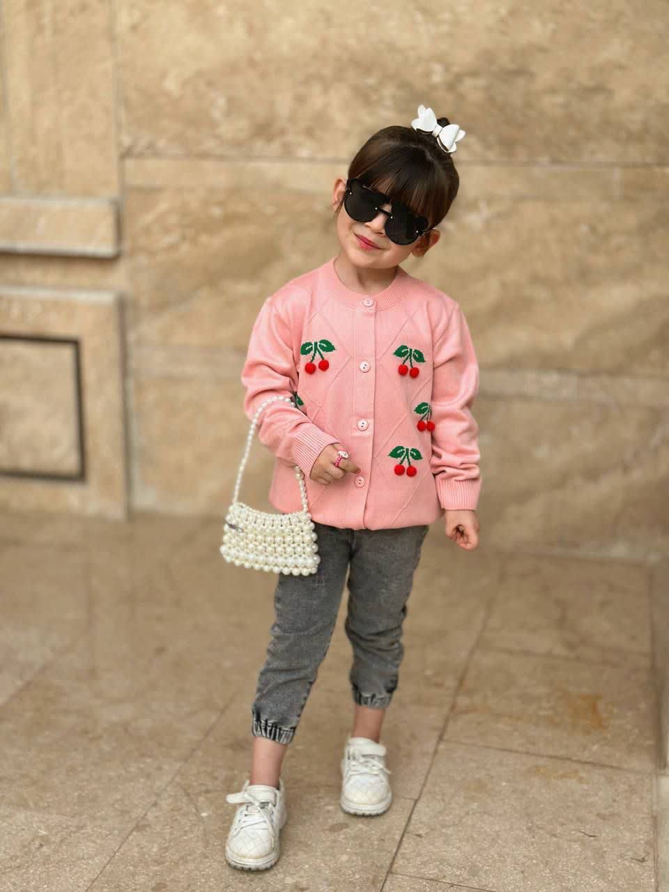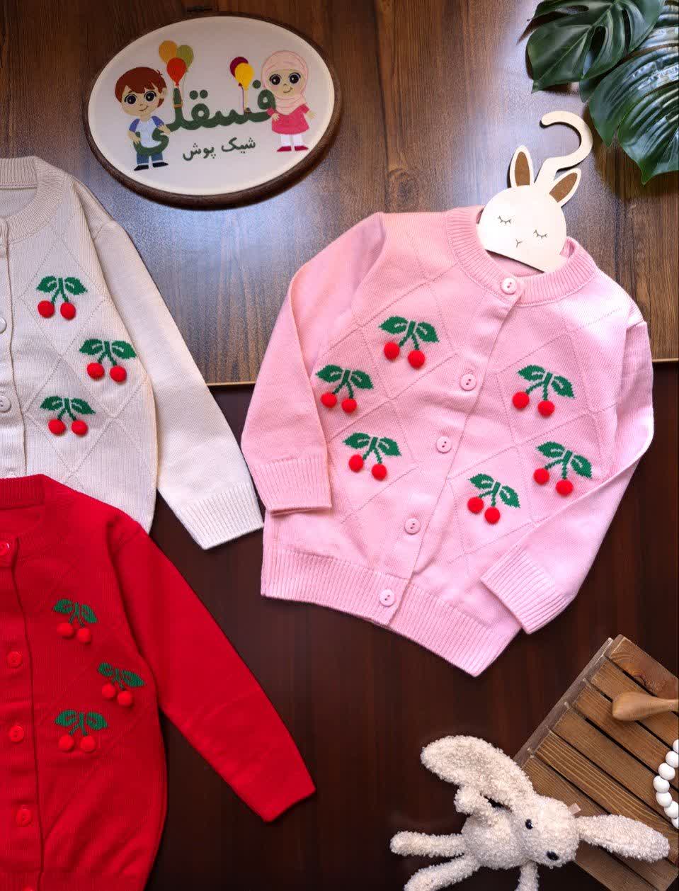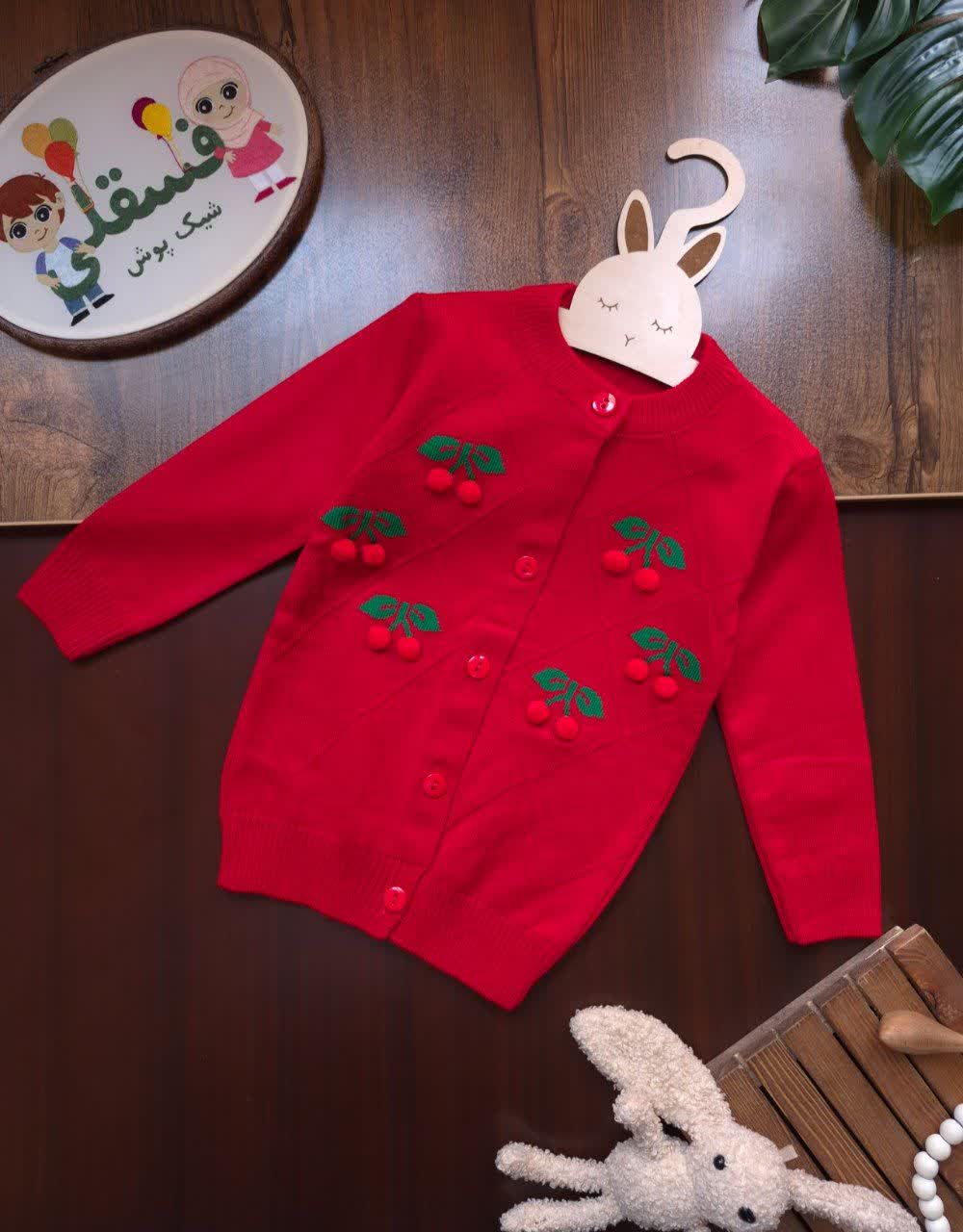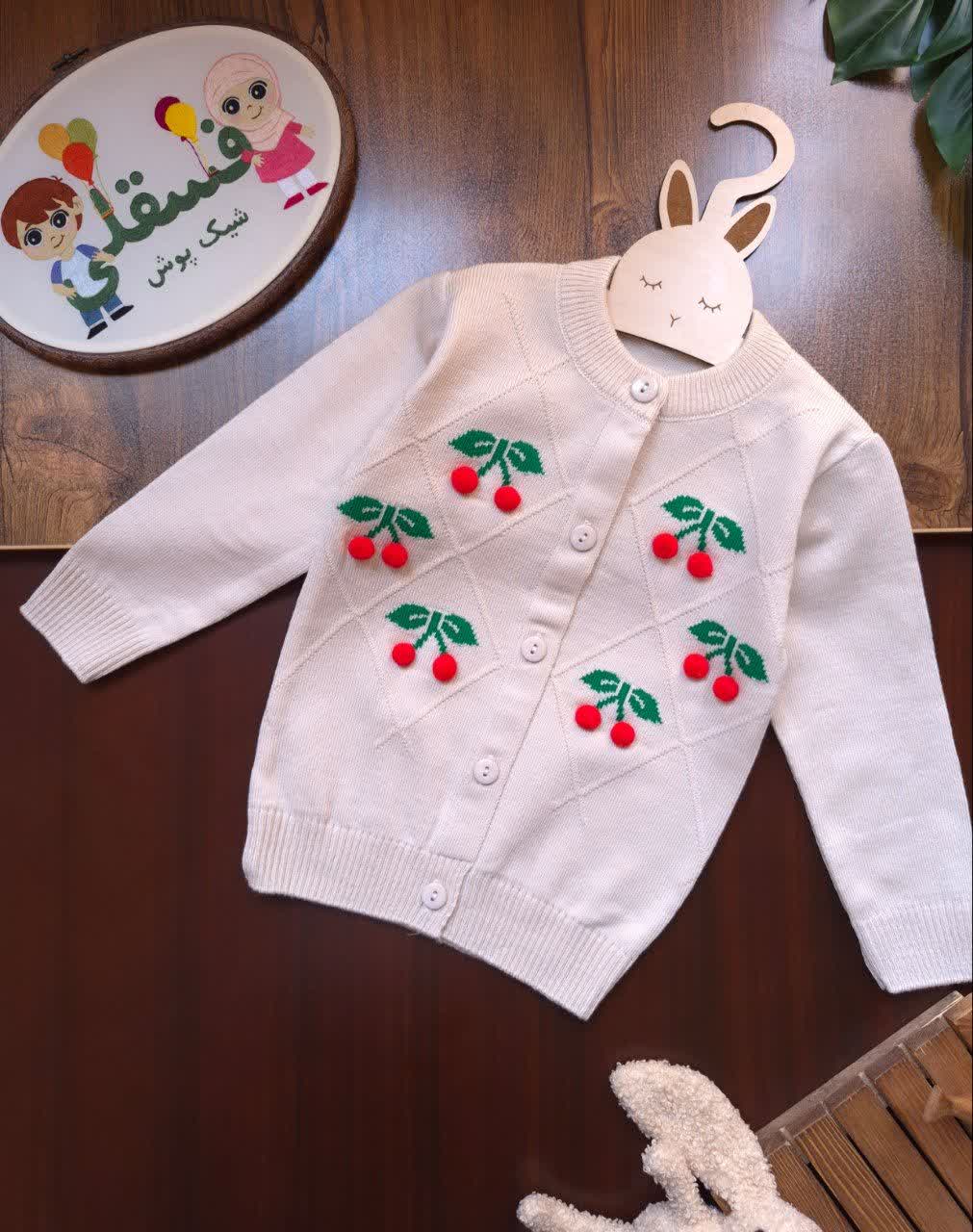 ژاکت بافت دخترانه طرح گیلاس 🍒